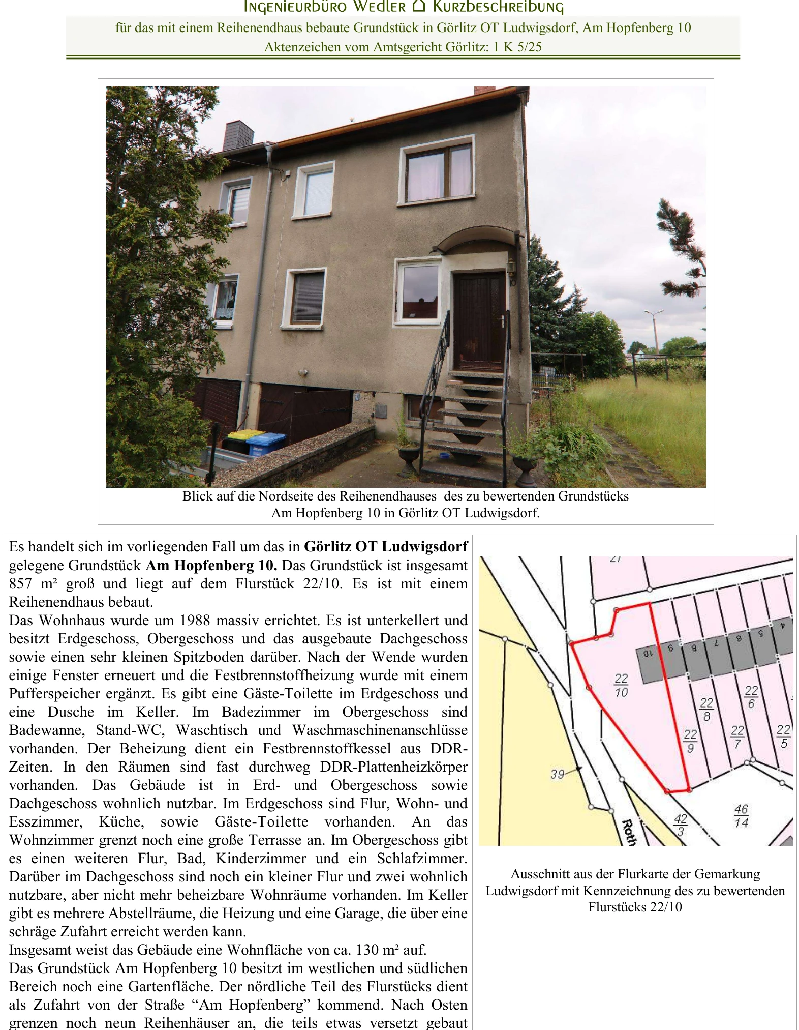 Zwangsversteigerung: Reihenhaus in Am Hopfenberg 10, 02826 Görlitz, (Ludwigsdorf) mit einem Verkehrswert von 100.000 €. Versteigerungstermin am 01.04.2026 am Amtsgericht Amtsgericht Görlitz, 130 m² Wohnfläche, 857 m² Grundstück. Inklusive KI-gestützter Gutachtenanalyse mit Investitions-Score und Mängelbewertung.