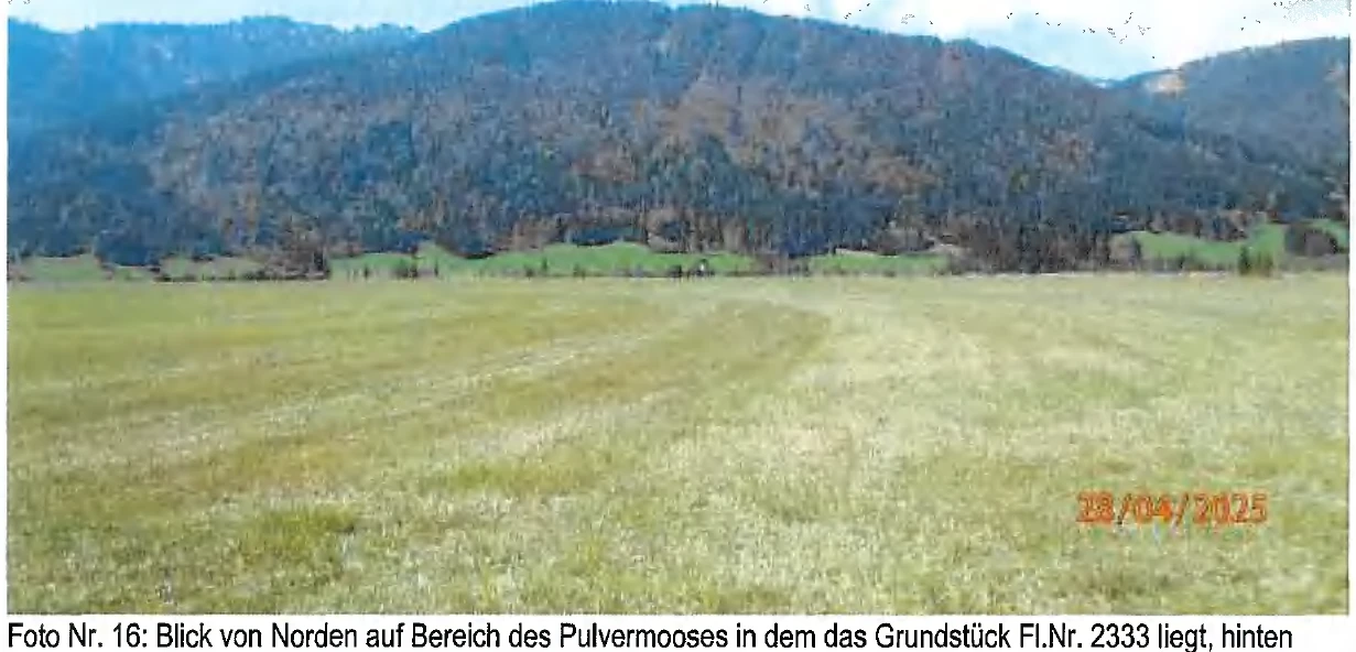 Zwangsversteigerung: land- und forstwirtschaftlich genutztes Grundstück in Pulvermoos, 82497 Unterammergau mit einem Verkehrswert von 6.100 €. Versteigerungstermin am 19.03.2026 am Amtsgericht Amtsgericht Weilheim i. OB, 8.701 m² Grundstück. Inklusive KI-gestützter Gutachtenanalyse mit Investitions-Score und Mängelbewertung.