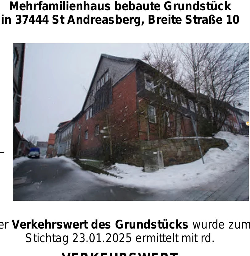 Zwangsversteigerung: Mehrfamilienhaus in Breite Str. 10, 37444 St. Andreasberg mit einem Verkehrswert von 46.100 €. Versteigerungstermin am 27.05.2026 am Amtsgericht Amtsgericht Clausthal-Zellerfeld, 392 m² Wohnfläche, 452 m² Grundstück. Inklusive KI-gestützter Gutachtenanalyse mit Investitions-Score und Mängelbewertung.