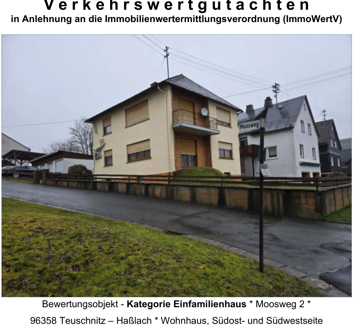 Zwangsversteigerung: Einfamilienhaus, Garage in Moosweg 2, 96358 Teuschnitz, (Haßlach) mit einem Verkehrswert von 130.000 €. Versteigerungstermin am 28.04.2026 am Amtsgericht Amtsgericht Coburg, 136 m² Wohnfläche, 679 m² Grundstück. Inklusive KI-gestützter Gutachtenanalyse mit Investitions-Score und Mängelbewertung.