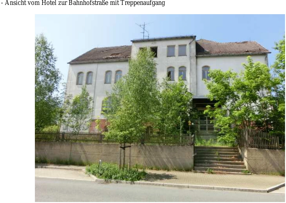 Zwangsversteigerung: Wohn-/Geschäftshaus, ehemals Hotel mit Gaststätte, Anbau Heizungsgeb. u. 5 PKW-Reihengaragen in Bahnhofstraße 1, 08547 Plauen, (Jößnitz) mit einem Verkehrswert von 200.000 €. Versteigerungstermin am 10.06.2026 am Amtsgericht Amtsgericht Zwickau, 3.159 m² Grundstück. Inklusive KI-gestützter Gutachtenanalyse mit Investitions-Score und Mängelbewertung.