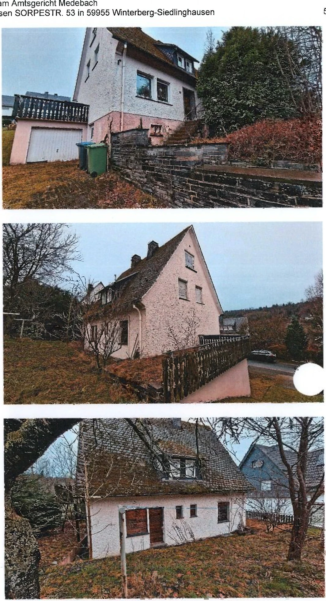 Zwangsversteigerung: Wohn-/Geschäftshaus in Sorpestraße 53, 59955 Winterberg, (Siedlinghausen) mit einem Verkehrswert von 99.000 €. Versteigerungstermin am 10.03.2026 am Amtsgericht Amtsgericht Medebach, 125 m² Wohnfläche, 678 m² Grundstück. Inklusive KI-gestützter Gutachtenanalyse mit Investitions-Score und Mängelbewertung.