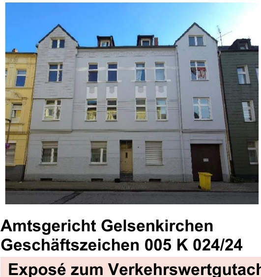 Zwangsversteigerung: Mehrfamilienhaus in Münchener Str. 51, 45881 Gelsenkirchen, (Schalke) mit einem Verkehrswert von 340.000 €. Versteigerungstermin am 19.05.2026 am Amtsgericht Amtsgericht Gelsenkirchen, 420 m² Wohnfläche, 436 m² Grundstück. Inklusive KI-gestützter Gutachtenanalyse mit Investitions-Score und Mängelbewertung.