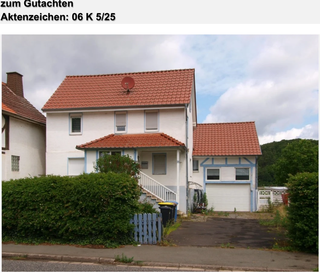 Zwangsversteigerung: Einfamilienhaus in Frankenstraße 35, 34537 Bad Wildungen, (Braunau) mit einem Verkehrswert von 132.000 €. Versteigerungstermin am 21.04.2026 am Amtsgericht Amtsgericht Fritzlar, 101 m² Wohnfläche, 489 m² Grundstück. Inklusive KI-gestützter Gutachtenanalyse mit Investitions-Score und Mängelbewertung.