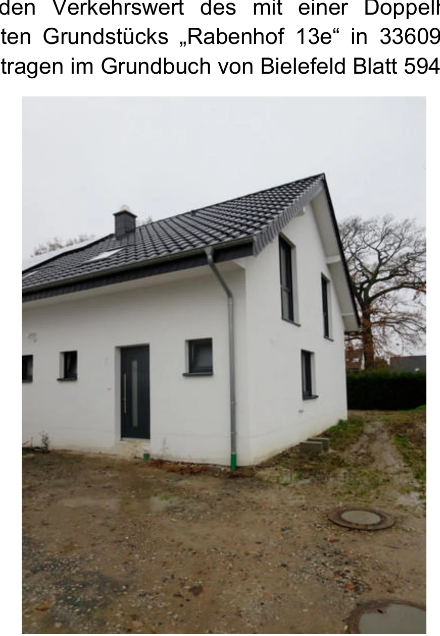 Zwangsversteigerung: Doppelhaushälfte in Rabenhof 13e, 33609 Bielefeld, (Heepen - Baumheide) mit einem Verkehrswert von 300.000 €. Versteigerungstermin am 16.04.2026 am Amtsgericht Amtsgericht Bielefeld, 88 m² Wohnfläche, 345 m² Grundstück. Inklusive KI-gestützter Gutachtenanalyse mit Investitions-Score und Mängelbewertung.