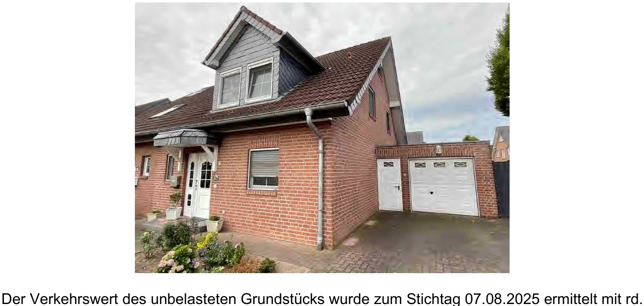 Zwangsversteigerung: Garage, Einfamilienhaus, Doppelhaushälfte in Grüner Weg 6, 47626 Kevelaer, (Winnekendonk) mit einem Verkehrswert von 340.000 €. Versteigerungstermin am 19.05.2026 am Amtsgericht Amtsgericht Geldern, 134 m² Wohnfläche, 383 m² Grundstück. Inklusive KI-gestützter Gutachtenanalyse mit Investitions-Score und Mängelbewertung.