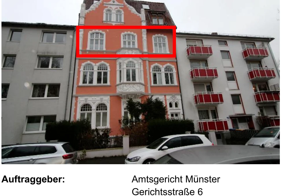 Zwangsversteigerung: Eigentumswohnung (3 bis 4 Zimmer) in Südstraße 89, 48153 Münster mit einem Verkehrswert von 270.000 €. Versteigerungstermin am 22.05.2026 am Amtsgericht Amtsgericht Münster, 72 m² Wohnfläche, 217 m² Grundstück. Inklusive KI-gestützter Gutachtenanalyse mit Investitions-Score und Mängelbewertung.