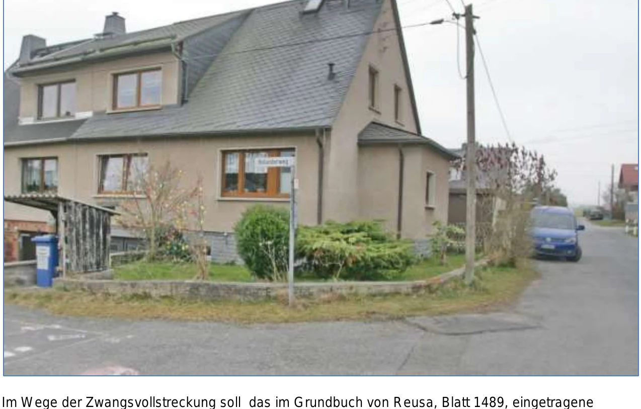 Zwangsversteigerung: Doppelhaushälfte in Holunderweg 1, 08529 Plauen mit einem Verkehrswert von 180.000 €. Versteigerungstermin am 16.04.2026 am Amtsgericht Amtsgericht Zwickau, 117 m² Wohnfläche, 537 m² Grundstück. Inklusive KI-gestützter Gutachtenanalyse mit Investitions-Score und Mängelbewertung.