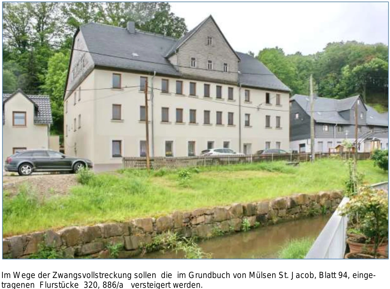 Zwangsversteigerung: dreigeschossiges Wohnhaus in St. Jacober Nebenstraße 129, 08132 Mülsen mit einem Verkehrswert von 157.000 €. Versteigerungstermin am 12.03.2026 am Amtsgericht Amtsgericht Zwickau, 1.860 m² Grundstück. Inklusive KI-gestützter Gutachtenanalyse mit Investitions-Score und Mängelbewertung.