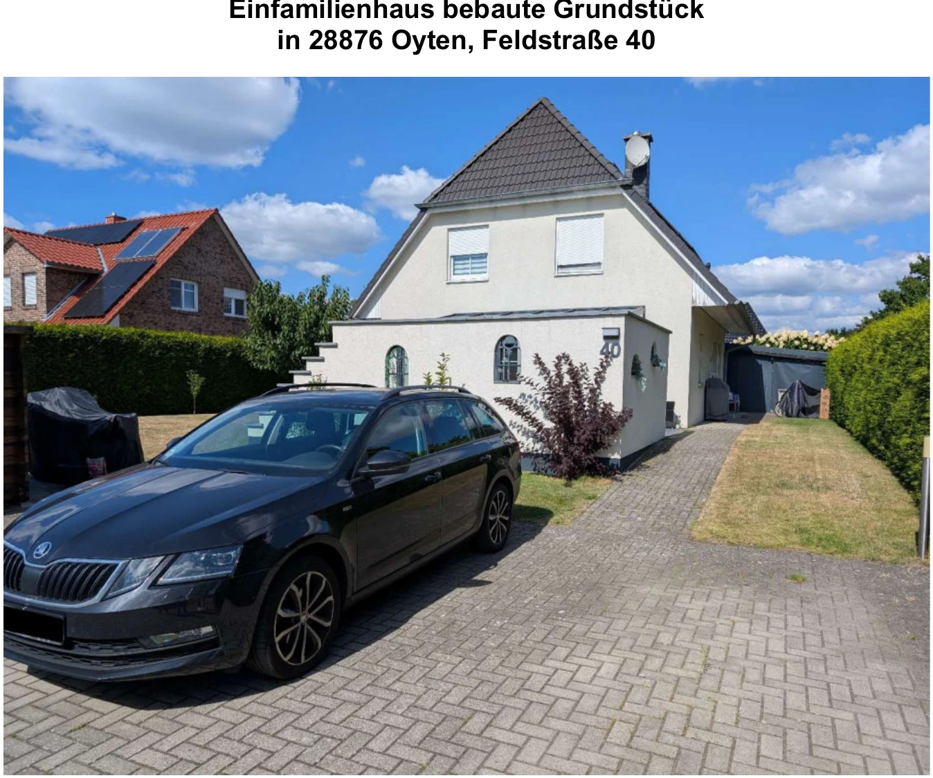 Zwangsversteigerung: Einfamilienhaus in Feldstraße 40, 28876 Oyten, (Bassen) mit einem Verkehrswert von 364.000 €. Versteigerungstermin am 20.03.2026 am Amtsgericht Amtsgericht Achim, 121 m² Wohnfläche, 564 m² Grundstück. Inklusive KI-gestützter Gutachtenanalyse mit Investitions-Score und Mängelbewertung.