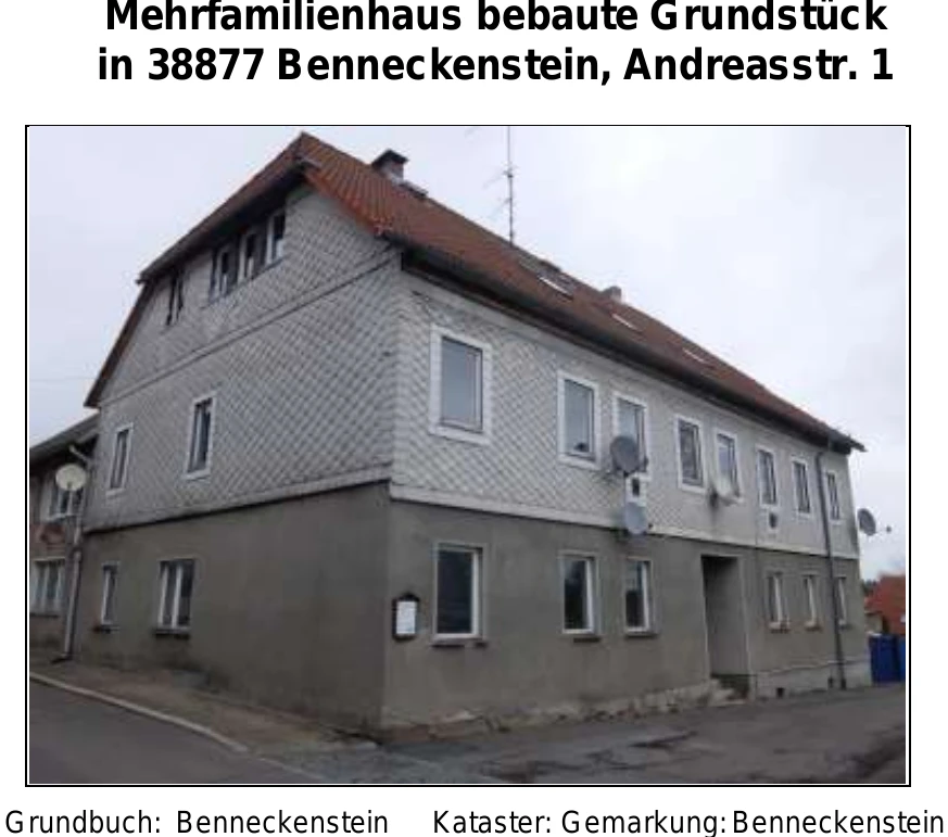 Zwangsversteigerung: Mehrfamilienhaus in Andreasstraße 1, 38877 Oberharz am Brocken, (Benneckenstein) mit einem Verkehrswert von 42.000 €. Versteigerungstermin am 21.05.2026 am Amtsgericht Amtsgericht Wernigerode. Inklusive KI-gestützter Gutachtenanalyse mit Investitions-Score und Mängelbewertung.