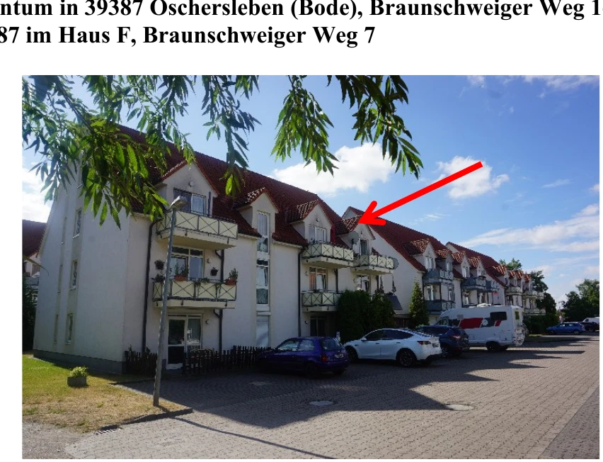 Zwangsversteigerung: Eigentumswohnung (1 bis 2 Zimmer) in Braunschweiger Weg 7, 39387 Oschersleben mit einem Verkehrswert von 30.600 €. Versteigerungstermin am 08.09.2026 am Amtsgericht Amtsgericht Oschersleben, 45 m² Wohnfläche, 8.889 m² Grundstück. Inklusive KI-gestützter Gutachtenanalyse mit Investitions-Score und Mängelbewertung.