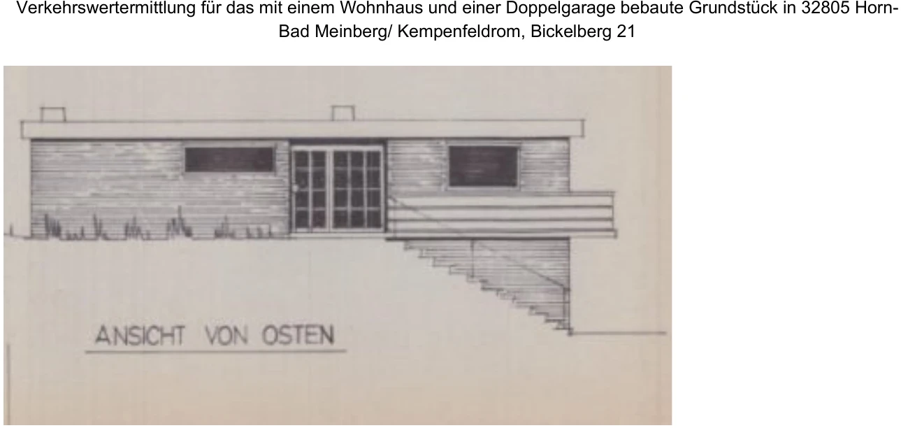 Zwangsversteigerung: Einfamilienhaus mit Doppelgarage/Liquidationsobjekt in Bickelberg 21, 32805 Horn-Bad Meinberg, (Kempenfeldrom) mit einem Verkehrswert von 16.000 €. Versteigerungstermin am 11.03.2026 am Amtsgericht Amtsgericht Detmold, 214 m² Wohnfläche, 1.122 m² Grundstück. Inklusive KI-gestützter Gutachtenanalyse mit Investitions-Score und Mängelbewertung.