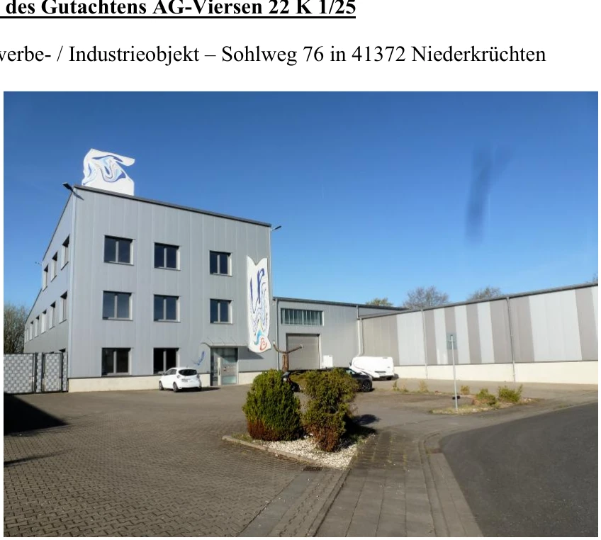 Zwangsversteigerung: gewerblich genutztes Grundstück in Sohlweg 76, 41372 Niederkrüchten, (Dam) mit einem Verkehrswert von 3.095.000 €. Versteigerungstermin am 15.04.2026 am Amtsgericht Amtsgericht Viersen, 5.565 m² Grundstück. Inklusive KI-gestützter Gutachtenanalyse mit Investitions-Score und Mängelbewertung.