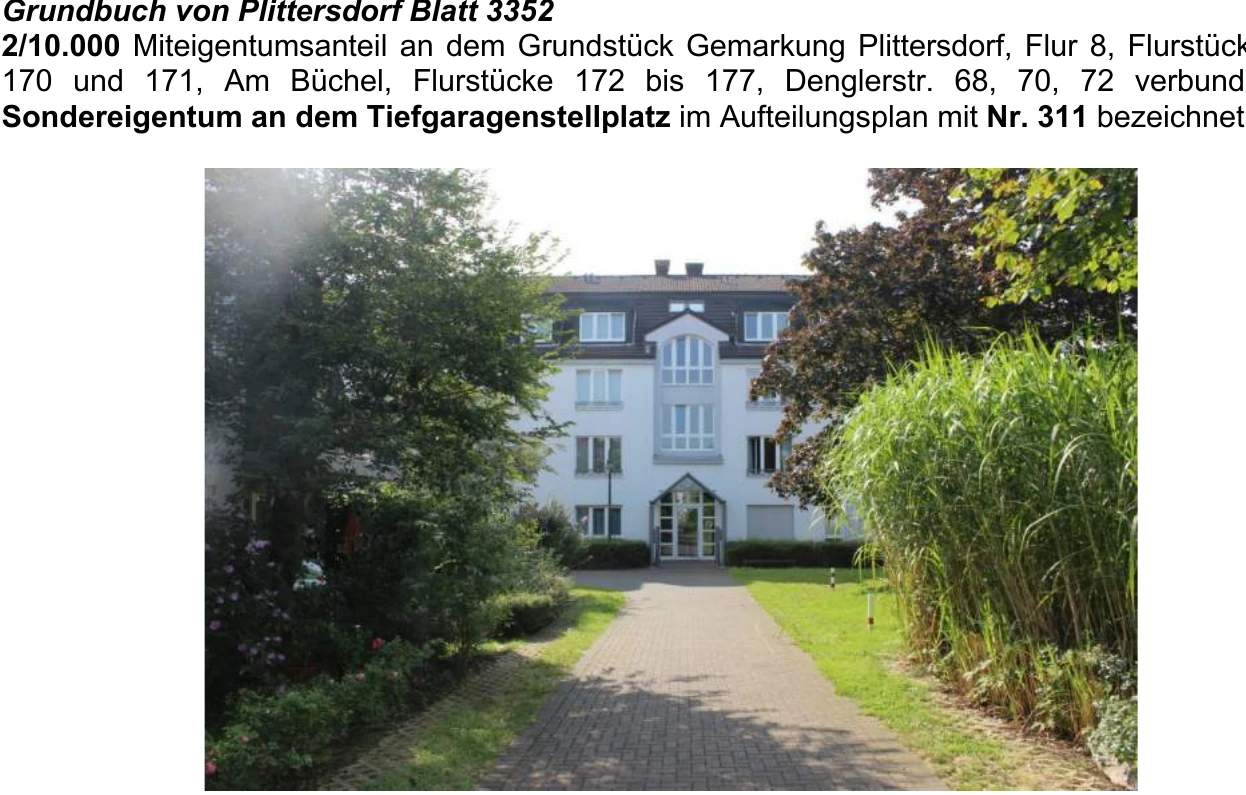 Zwangsversteigerung: Wohneigentumsanlage in Am Büchel, 53173 Bonn, (Plittersdorf) mit einem Verkehrswert von 295.300 €. Versteigerungstermin am 22.06.2026 am Amtsgericht Amtsgericht Bonn, 67 m² Wohnfläche, 6.180 m² Grundstück. Inklusive KI-gestützter Gutachtenanalyse mit Investitions-Score und Mängelbewertung.