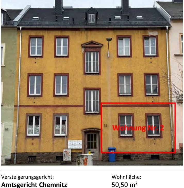 Zwangsversteigerung: Wohnungseigentum in Humboldtstraße 58, 09599 Freiberg mit einem Verkehrswert von 15.000 €. Versteigerungstermin am 23.03.2026 am Amtsgericht Amtsgericht Chemnitz, 51 m² Wohnfläche, 450 m² Grundstück. Inklusive KI-gestützter Gutachtenanalyse mit Investitions-Score und Mängelbewertung.