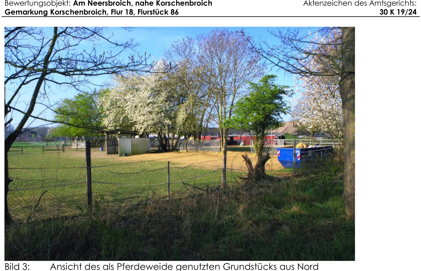 Zwangsversteigerung: land- und forstwirtschaftlich genutztes Grundstück in Am Neersbroich, 41352 Korschenbroich mit einem Verkehrswert von 74.000 €. Versteigerungstermin am 31.07.2026 am Amtsgericht Amtsgericht Neuss, 4.670 m² Grundstück. Inklusive KI-gestützter Gutachtenanalyse mit Investitions-Score und Mängelbewertung.