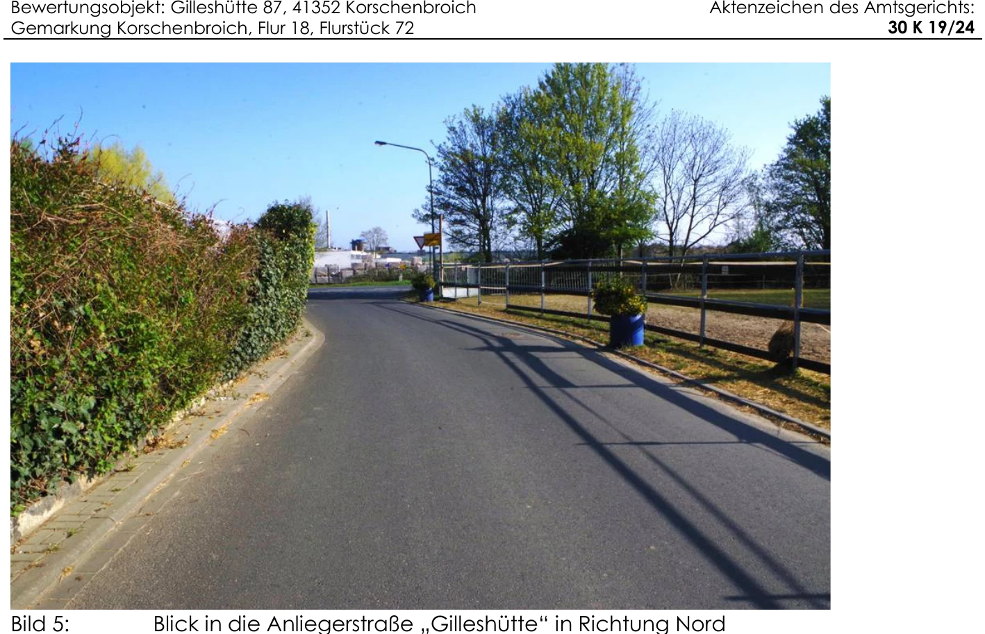 Zwangsversteigerung: Einfamilienhaus mit Nebengebäude in Gilleshütte 87, 41352 Korschenbroich mit einem Verkehrswert von 153.000 €. Versteigerungstermin am 10.07.2026 am Amtsgericht Amtsgericht Neuss, 94 m² Wohnfläche, 1.310 m² Grundstück. Inklusive KI-gestützter Gutachtenanalyse mit Investitions-Score und Mängelbewertung.