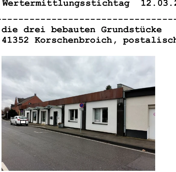 Zwangsversteigerung: drei bebaute Grundstücke mit Wohn- und Geschäftshaus, Wintergarten und Garage in Bleichstraße 1b, 41352 Korschenbroich mit einem Verkehrswert von 306.300 €. Versteigerungstermin am 25.09.2026 am Amtsgericht Amtsgericht Neuss, 490 m² Wohnfläche, 778 m² Grundstück. Inklusive KI-gestützter Gutachtenanalyse mit Investitions-Score und Mängelbewertung.