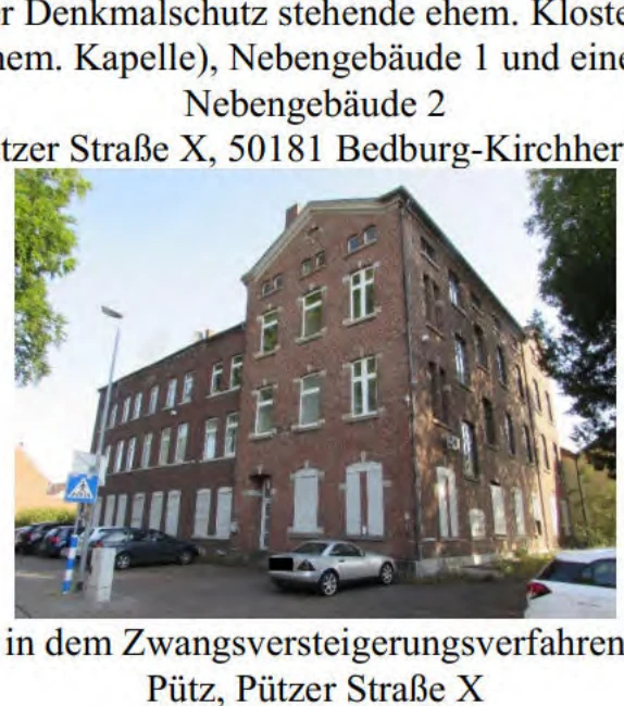 Zwangsversteigerung: Baugrundstück, Wohn-/Geschäftshaus in Pützer Straße 9, 50181 Bedburg, (Pütz) mit einem Verkehrswert von 484.000 €. Versteigerungstermin am 05.08.2026 am Amtsgericht Amtsgericht Bergheim, 875 m² Wohnfläche, 2.827 m² Grundstück. Inklusive KI-gestützter Gutachtenanalyse mit Investitions-Score und Mängelbewertung.
