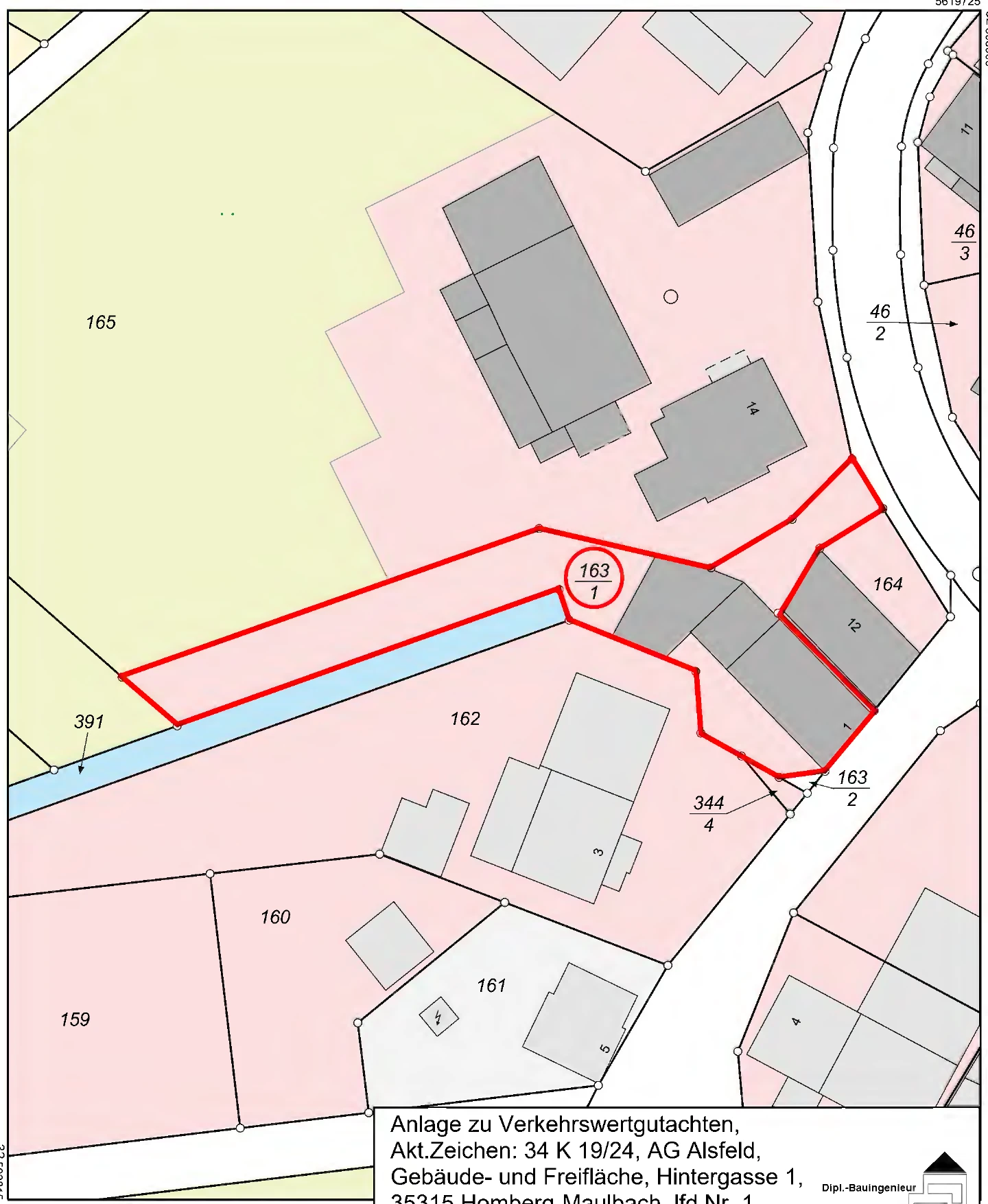 Zwangsversteigerung: Einfamilienhaus in Hintergasse 1, 35315 Homberg (Ohm), (Maulbach) mit einem Verkehrswert von 105.000 €. Versteigerungstermin am 15.06.2026 am Amtsgericht Amtsgericht Alsfeld, 98 m² Wohnfläche, 617 m² Grundstück. Inklusive KI-gestützter Gutachtenanalyse mit Investitions-Score und Mängelbewertung.