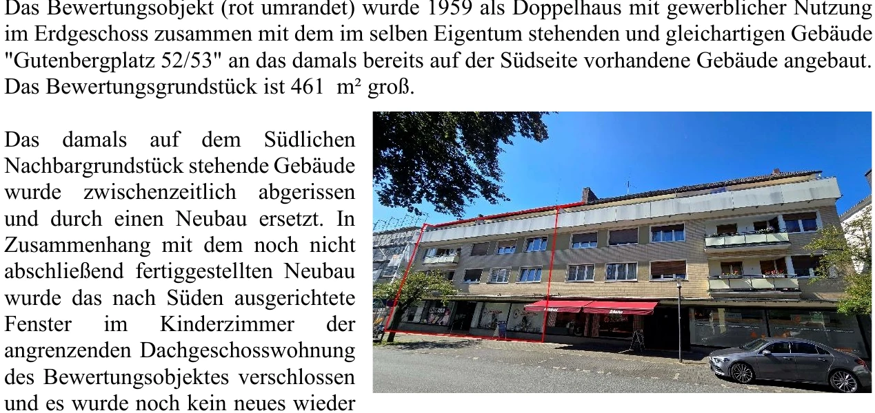 Zwangsversteigerung: Wohn-/Geschäftshaus in Gutenbergplatz 53, 52, 59821 Arnsberg mit einem Verkehrswert von 945.000 €. Versteigerungstermin am 07.04.2026 am Amtsgericht Amtsgericht Arnsberg, 1.400 m² Wohnfläche, 966 m² Grundstück. Inklusive KI-gestützter Gutachtenanalyse mit Investitions-Score und Mängelbewertung.