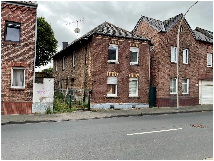 Zwangsversteigerung: Einfamilienhaus in Heerlener Straße 72, 52531 Übach-Palenberg, (Scherpenseel) mit einem Verkehrswert von 67.000 €. Versteigerungstermin am 16.07.2026 am Amtsgericht Amtsgericht Geilenkirchen, 90 m² Wohnfläche, 137 m² Grundstück. Inklusive KI-gestützter Gutachtenanalyse mit Investitions-Score und Mängelbewertung.