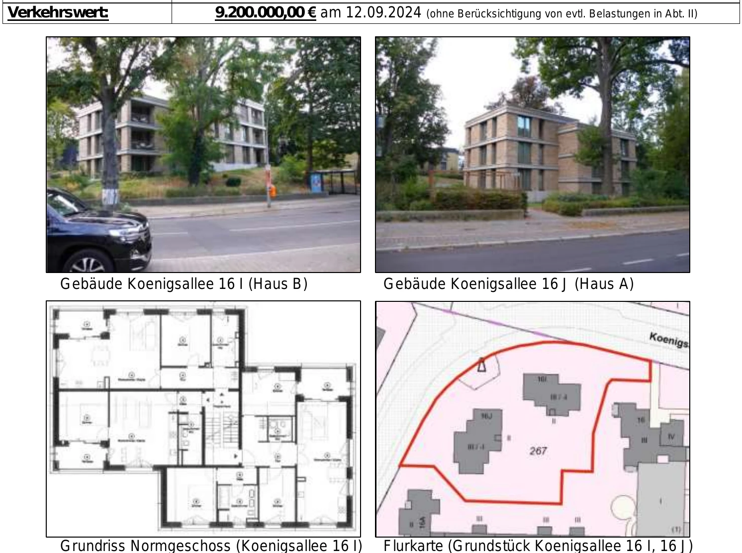 Zwangsversteigerung: Mehrfamilienhausgrundstück in Königsallee 16 I, 14193 Berlin mit einem Verkehrswert von 9.200.000 €. Versteigerungstermin am 29.04.2026 am Amtsgericht Amtsgericht Charlottenburg, 1.124 m² Wohnfläche, 2.915 m² Grundstück. Inklusive KI-gestützter Gutachtenanalyse mit Investitions-Score und Mängelbewertung.