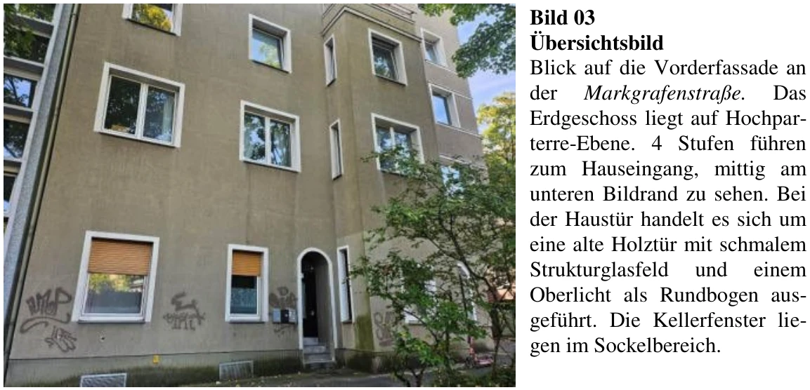 Zwangsversteigerung: Eigentumswohnung in Blumenthalstr., Markgrafenstr. 30, 45138 Essen mit einem Verkehrswert von 101.000 €. Versteigerungstermin am 06.05.2026 am Amtsgericht Amtsgericht Essen, 95 m² Wohnfläche, 237 m² Grundstück. Inklusive KI-gestützter Gutachtenanalyse mit Investitions-Score und Mängelbewertung.