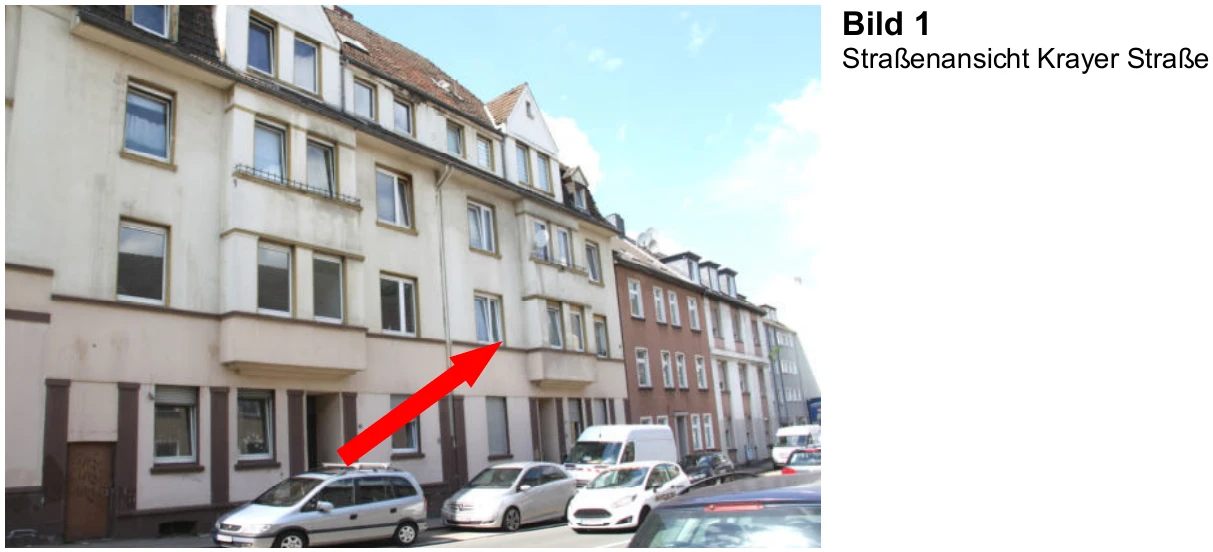 Zwangsversteigerung: Eigentumswohnung (1 bis 2 Zimmer) in Krayer Str. 81,83, 85, 45307 Essen, (Steele) mit einem Verkehrswert von 38.000 €. Versteigerungstermin am 18.06.2026 am Amtsgericht Amtsgericht Essen, 40 m² Wohnfläche, 995 m² Grundstück. Inklusive KI-gestützter Gutachtenanalyse mit Investitions-Score und Mängelbewertung.