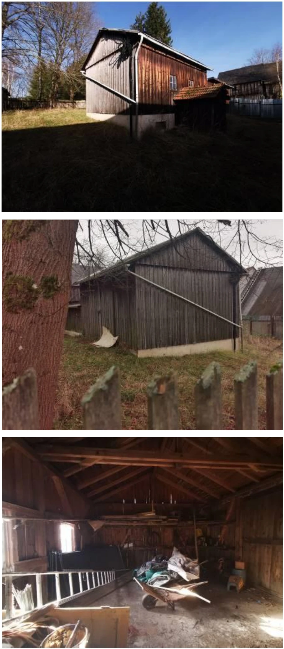 ca. 1900 (Bauernhaus), ca. 1950-1975 (Holzscheunen), ca. 1965-1975 (Garagen)
