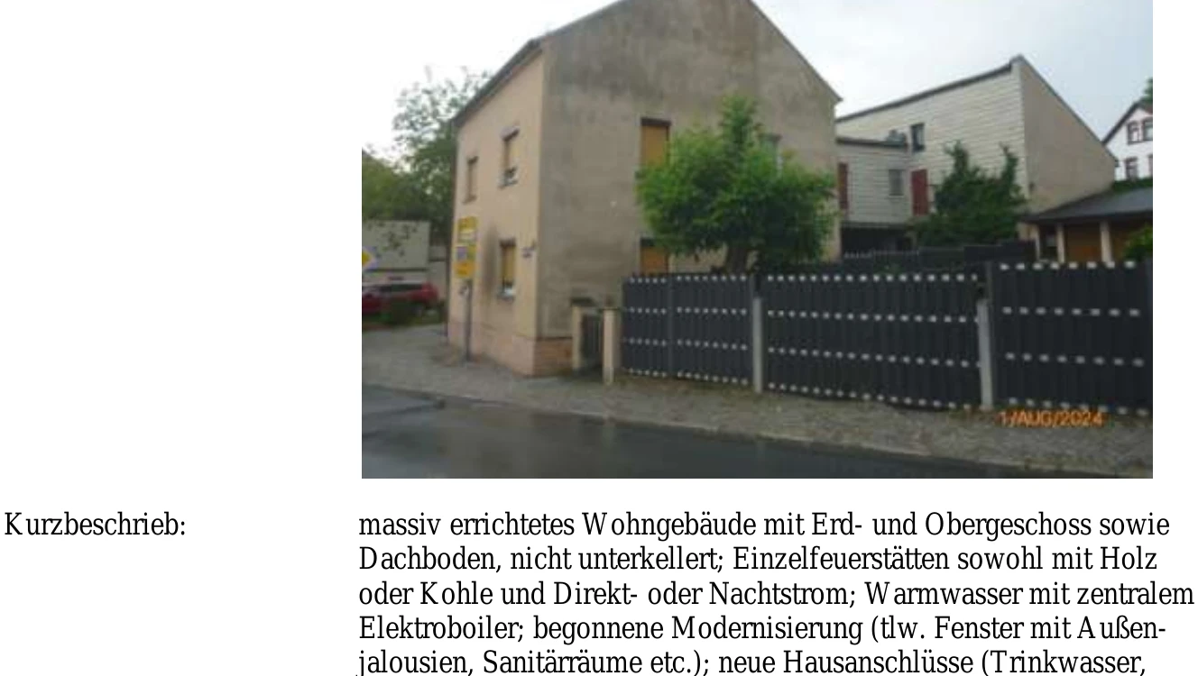 Zwangsversteigerung: Wohnhaus in Schleizer Straße 21, 07926 Gefell mit einem Verkehrswert von 61.900 €. Versteigerungstermin am 18.03.2026 am Amtsgericht Amtsgericht Rudolstadt, 108 m² Wohnfläche, 228 m² Grundstück. Inklusive KI-gestützter Gutachtenanalyse mit Investitions-Score und Mängelbewertung.