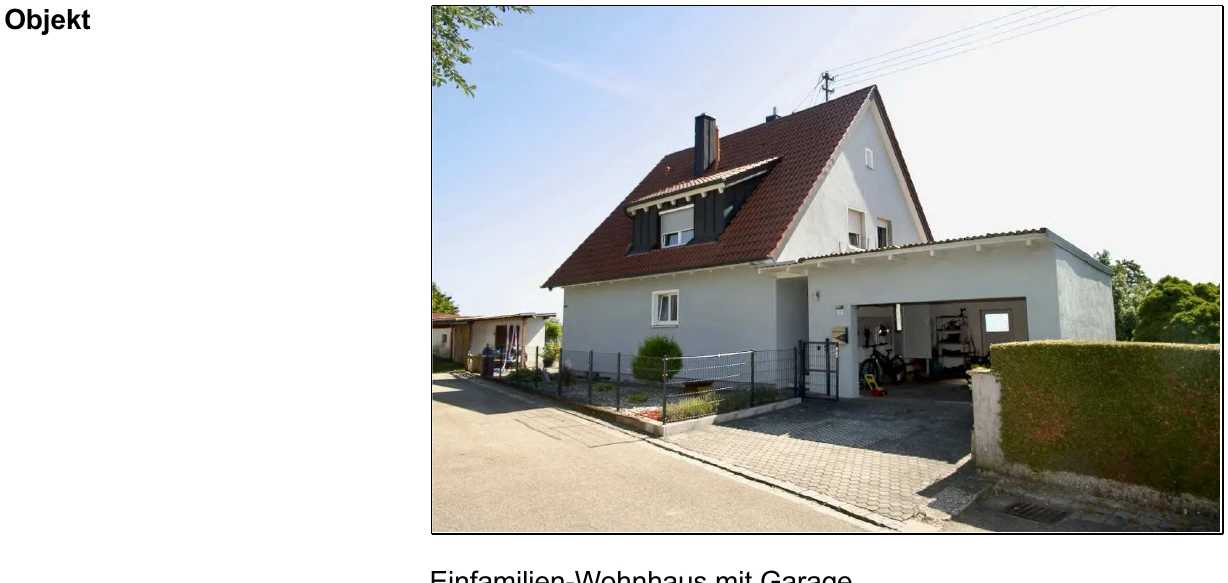 Zwangsversteigerung: Einfamilienhaus in Primelstraße 16, 86660 Tapfheim mit einem Verkehrswert von 360.000 €. Versteigerungstermin am 27.03.2026 am Amtsgericht Amtsgericht Nördlingen, 136 m² Wohnfläche, 1.112 m² Grundstück. Inklusive KI-gestützter Gutachtenanalyse mit Investitions-Score und Mängelbewertung.