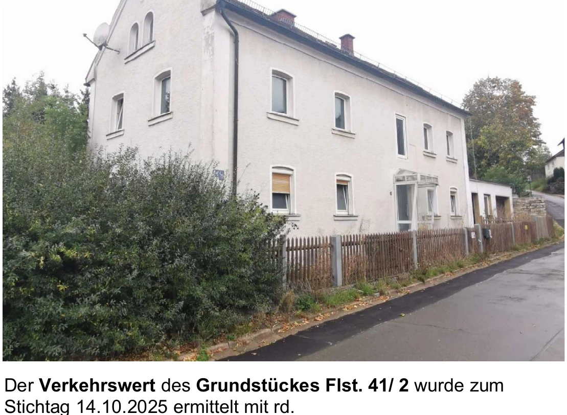 Zwangsversteigerung: Einfamilienhaus mit Anbau und Garage in Haidter Straße 13, 95028 Hof mit einem Verkehrswert von 115.000 €. Versteigerungstermin am 13.04.2026 am Amtsgericht Amtsgericht Hof, 197 m² Wohnfläche, 370 m² Grundstück. Inklusive KI-gestützter Gutachtenanalyse mit Investitions-Score und Mängelbewertung.